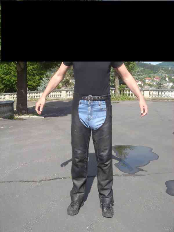 Kožené chaps, rozepínací nohavice po stranách, velmi kvalitní, na vysokého muže 190 - 200 cm - nové