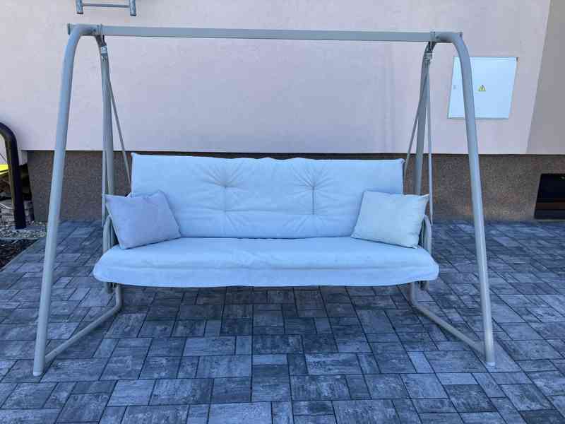 Prodám použitou zahradní houpačku bez stříšky, opotřebovaný sedák, konstrukce funkční, bez poškození, pouze vlastní odvoz, cena 1990,- Kč.