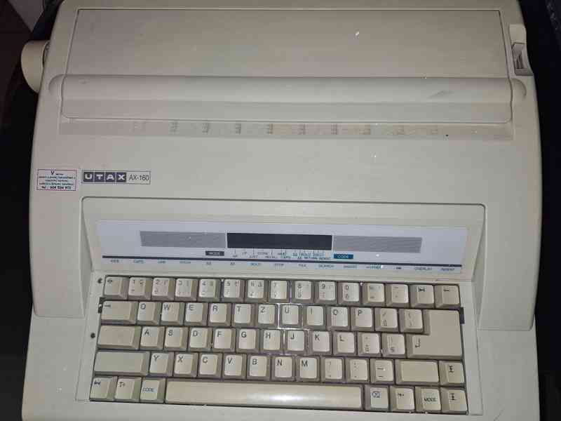 Prodej funkčního nepoužívaného elektrického psacího stroje UTAX AX-160 viz foto. Cena činí 200 Kč. Odvoz z Ostravy. Tel: 7760265 007, E-mail: elektroodbyt@post.cz